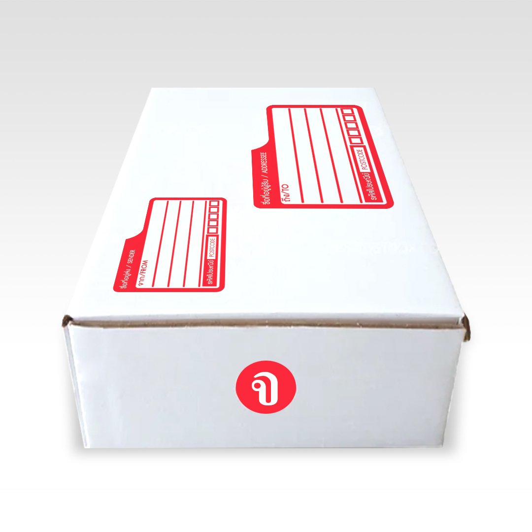 กล่องไปรษณีย์ ไดคัท สีขาว เบอร์ จ แบบพิมพ์ ขนาด 24x40x17cm (กxยxส) หนา 3ชั้น