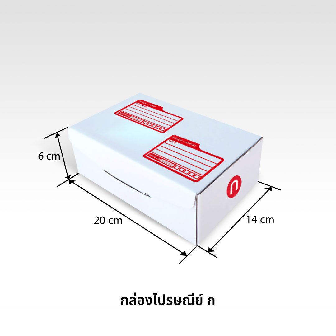 กล่องไปรษณีย์ ไดคัท สีขาว เบอร์ ก แบบพิมพ์ ขนาด 14x20x6cm (กxยxส) หนา 3ชั้น